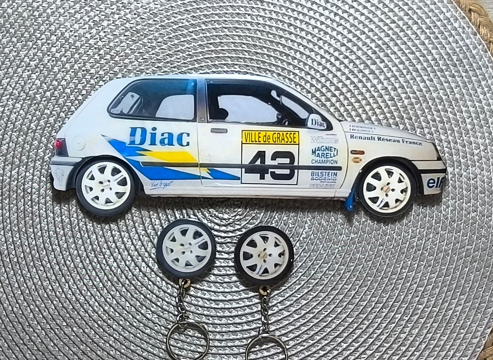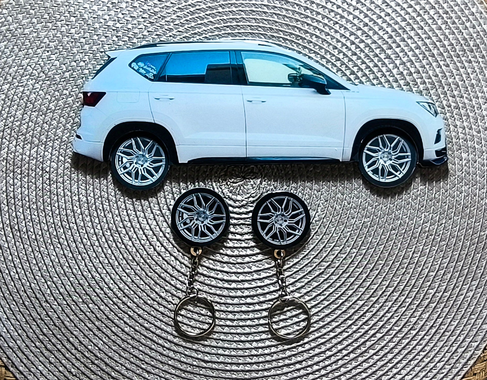 📦 Incluye: Cuelga llaves y 2 llaveros con forma de ruedas de tu coche.